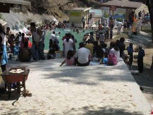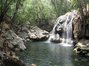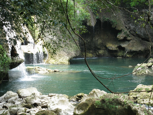 J’étais déjà bien contente comme ça, au soleil, avec mon bouquin (Como agua para chocolate, mon premier roman en espagnol, oui messieurs-dames), quand le guide nous a proposé une petite excursion en aval de la rivière. Il s’agissait de nager de bassin en bassin, puis de descendre dans un tunnel, de sauter dans un autre bassin, bref, une inoffensive promenade de santé.