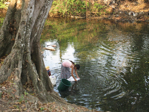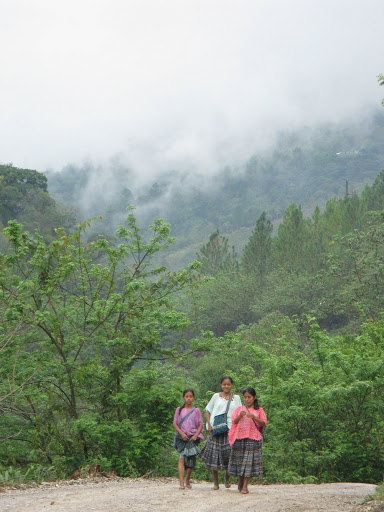 Il faut deux heures et demie d’une route aussi sinueuse qu’accidentée pour se rendre de Coban à Semuc Champey. On traverse des plantations de cardamome, de café, de maïs; on aperçoit sous les frondaisons quelques masures de planches reliées entre elles par un étroit sentier. Comme c’était dimanche, les familles se rendaient à l’église, les femmes serrant contre elles leur missel. On a doublé quelques pick-up remplis de gens debout, serrés les uns contre les autres. L’un s’est arrêté pour faire monter encore trois femmes, dont l’une portait dans ses bras un tout petit enfant comme un ballot.