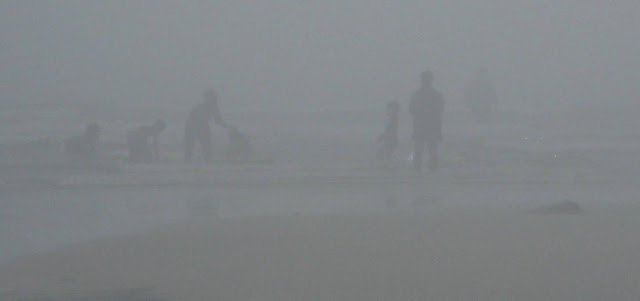 Hier, la plage de Popham était complètement dissimulée sous un épais brouillard, le coup d’œil était proprement surréaliste. Les pauvres lifeguards n’y voyaient goutte, ça complique drôlement les opérations de surveillance et de sauvetage!