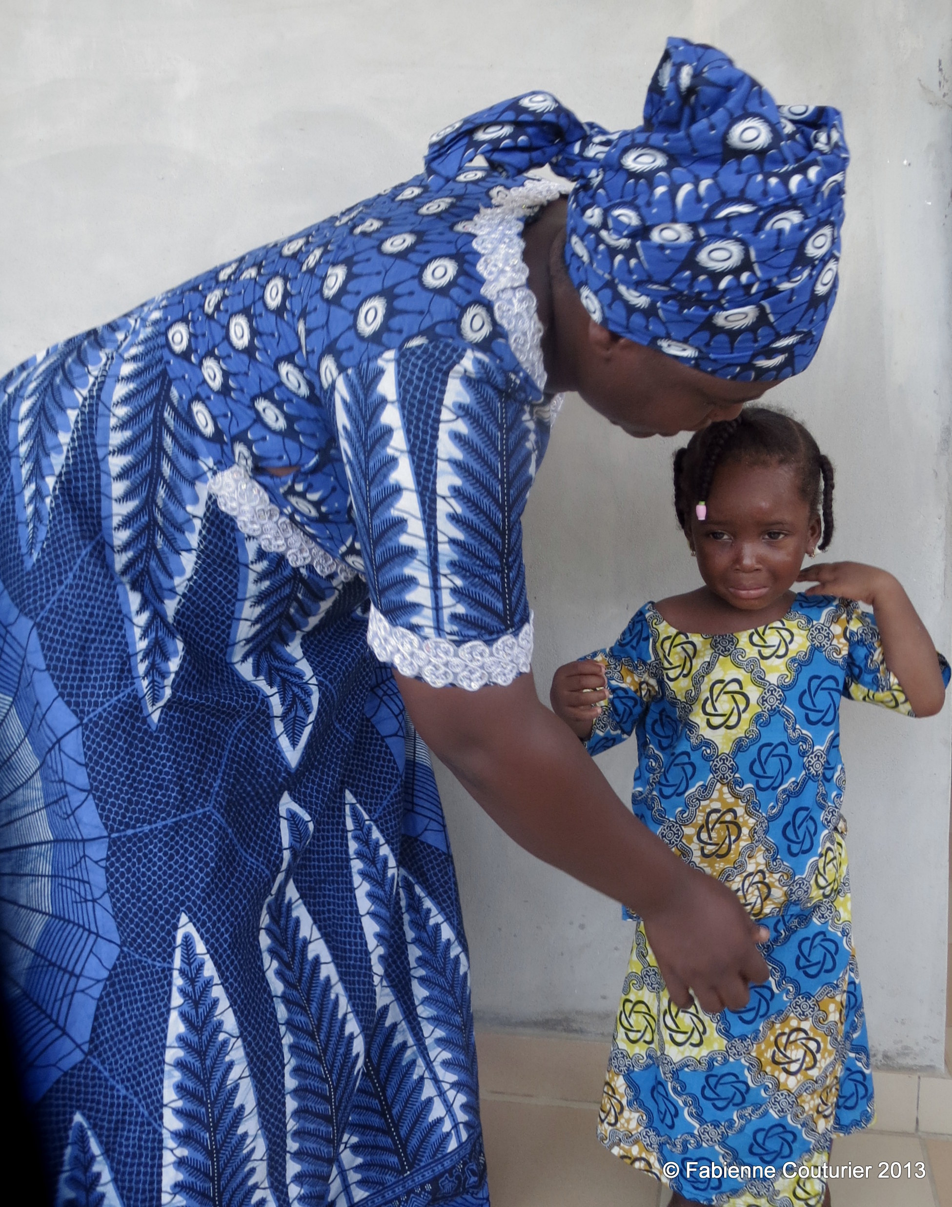 Pélagie dans sa belle robe essaie de rassurer Fifamé, qui a un peu peur de l’appareil photo.