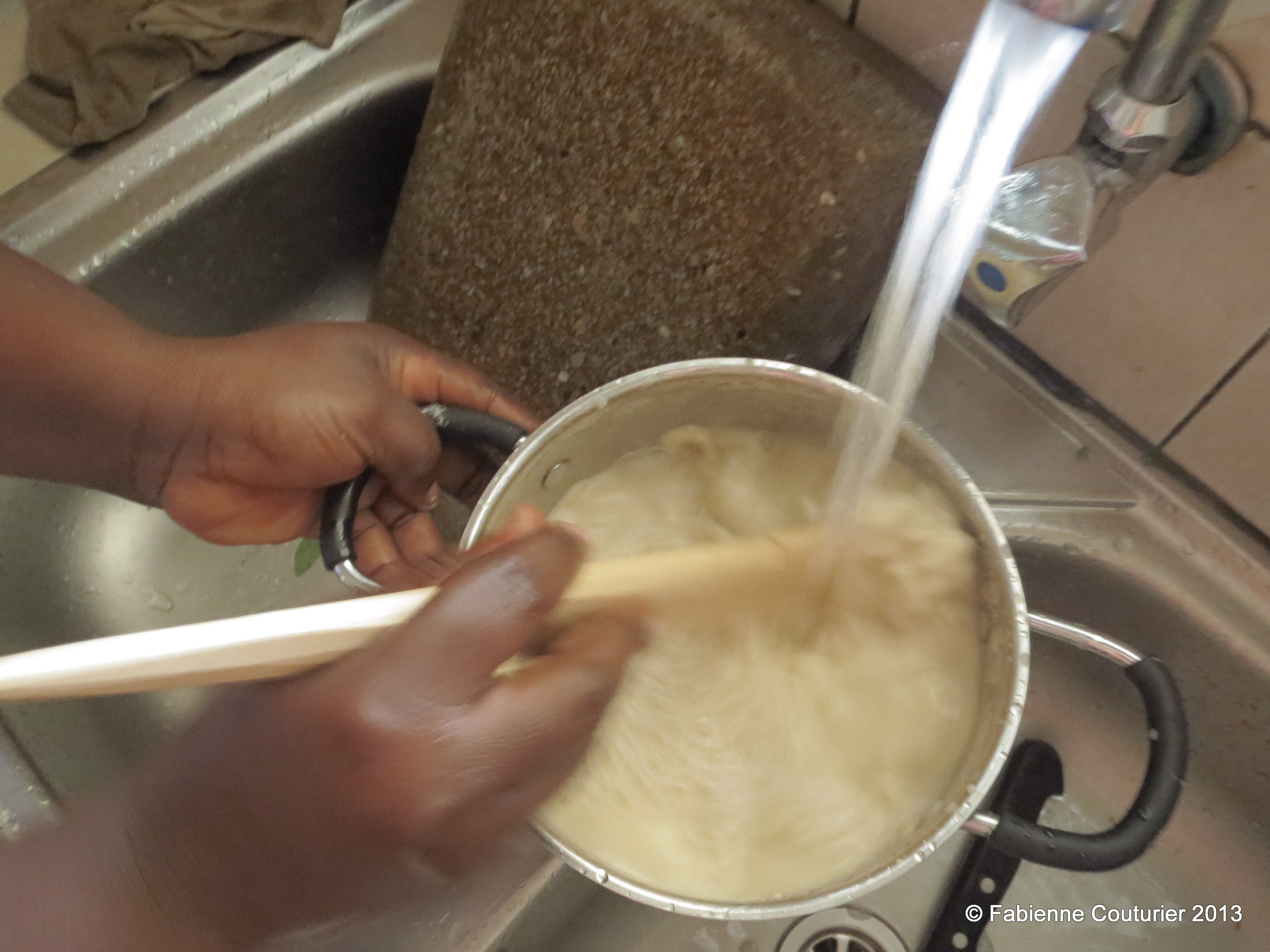 Pour faire le wo, délayez de la farine de maïs dans de l’eau froide, mélangez et laissez reposer.