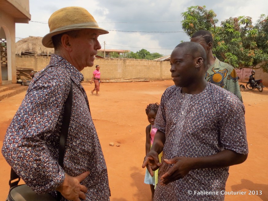 MonChéri avec Julien, dans le pagne officiel de la cérémonie.