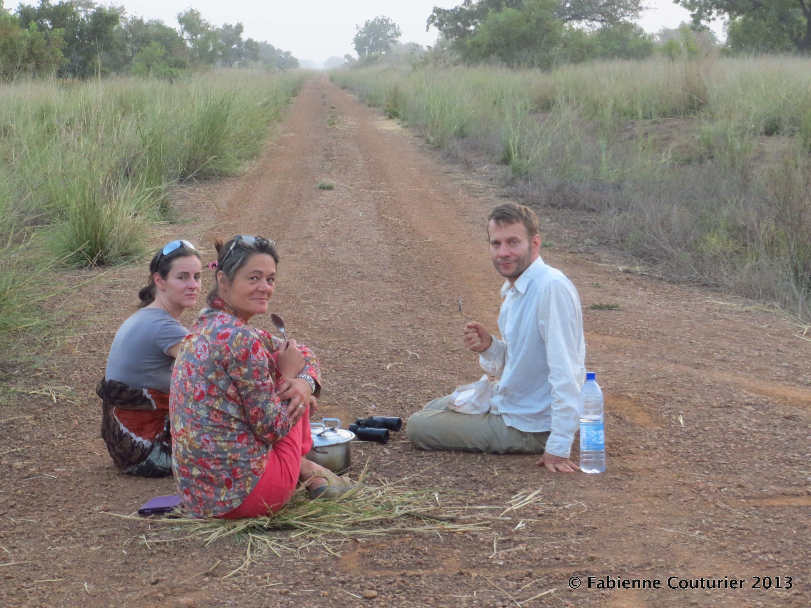 À la fin du jour, toujours pas de Razak. Nous nous installons au beau milieu du chemin (pas question qu’un véhicule passe sans s’arrêter!) pour déguster les restes ultimes de nos provisions: pâtes nature avec trois ou quatre tomates cerise.