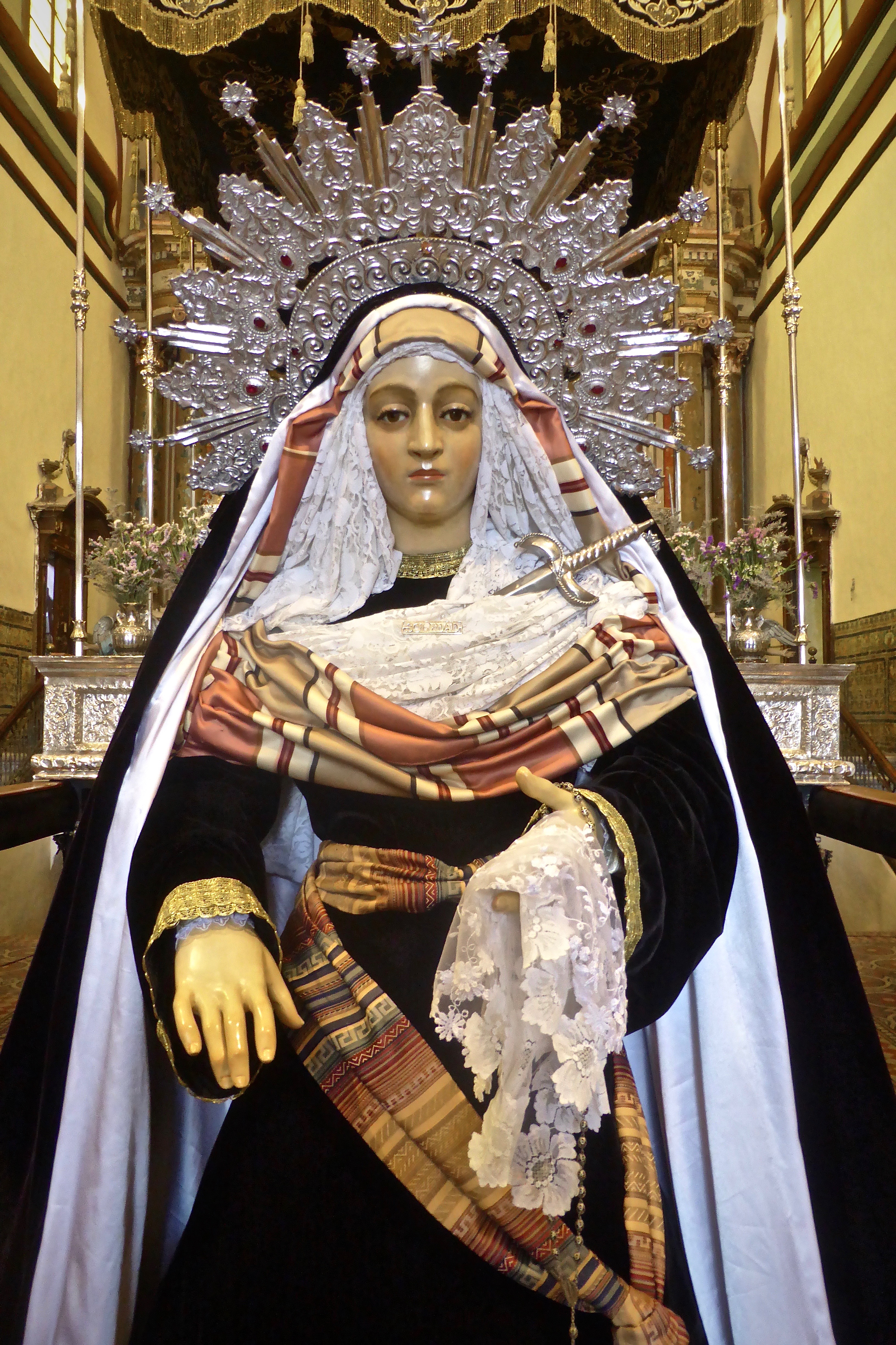 Une madone parée comme une reine à qui les dévots viennent baiser la main. Il y a toujours une dame à côté, coiffée d’une mantille noire, qui essuie la main avec un petit mouchoir avant chaque baiser. Beurk quand même.