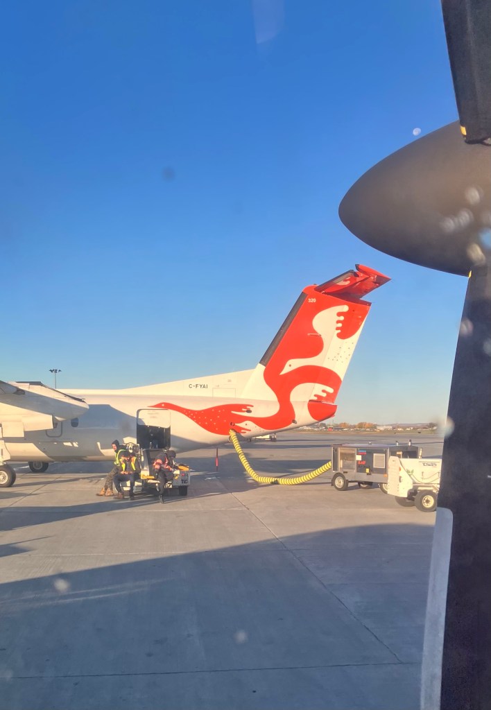 On avait un arrêt prévu à La Grande, pour scanner nos personnes et nos bagages afin que nous puissions rentrer à l’aéroport Trudeau aussi purs qu’un jus de pomme filtré, parce qu’il n’y a pas l’équipement nécessaire à Puvirnituq.