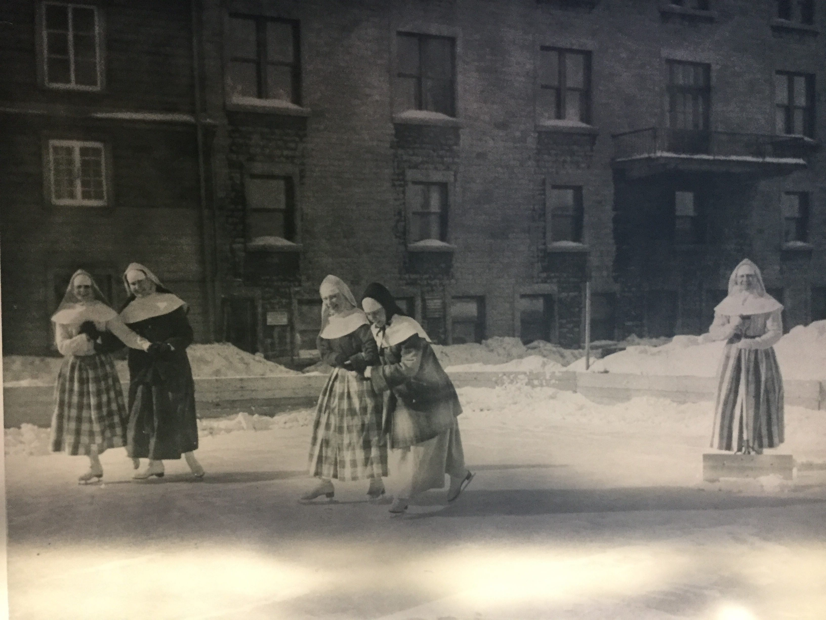 Sur les photos anciennes, on voit les soeurs ensemble, jeunes et moins jeunes, jouer aux cartes, patiner, travailler au jardin, s’adonner à des travaux d’aiguille, chanter en choeur autour d’un piano — et, bien sûr, prendre soin des malades, leur vocation première.