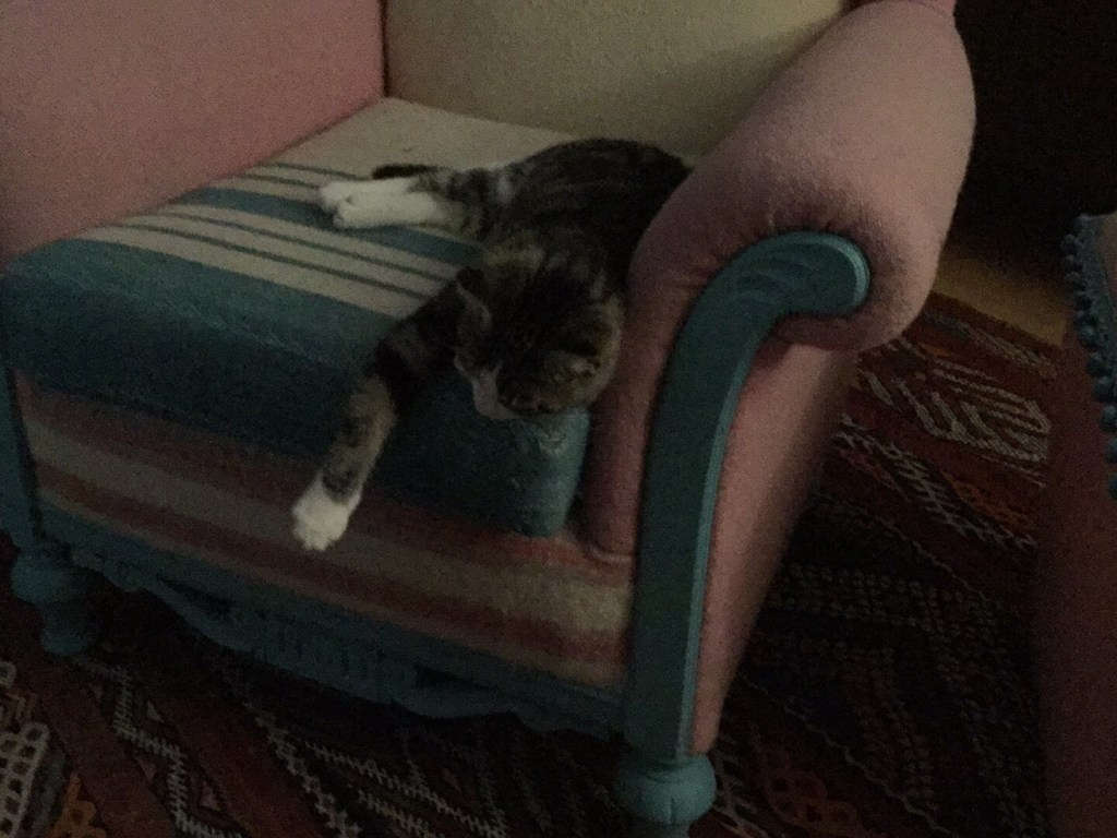 Là, j’vais me coucher, mais j’ai quand même une inquiétude pis j’sais pas si j’vais dormir. La tatie a dit aujourd’hui le mot «vétérinaire», pis elle a sorti le petit nid dans lequel elle m’avait mise pour m’emmener ici. Je crains le pire.